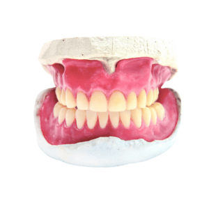 Complete dentures are used when all teeth in an arch (upper or lower) are missing or need to be extracted. They consist of a flesh-colored acrylic base that fits over your gums and supports a full set of artificial teeth.